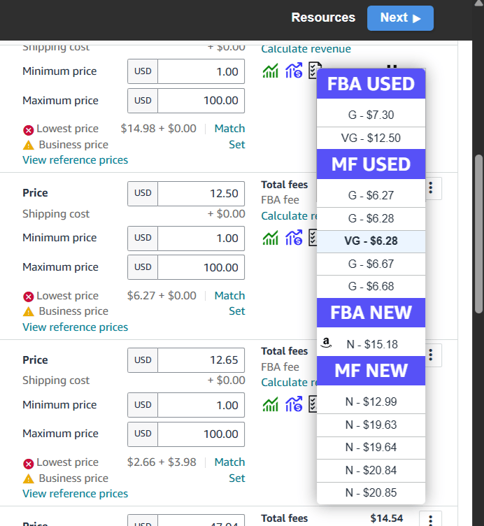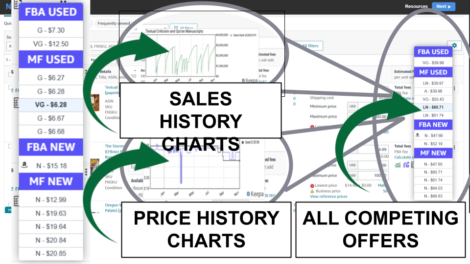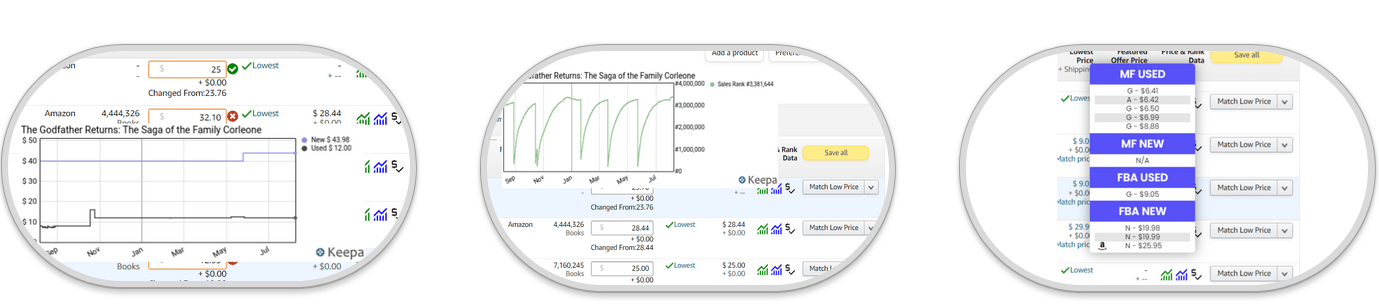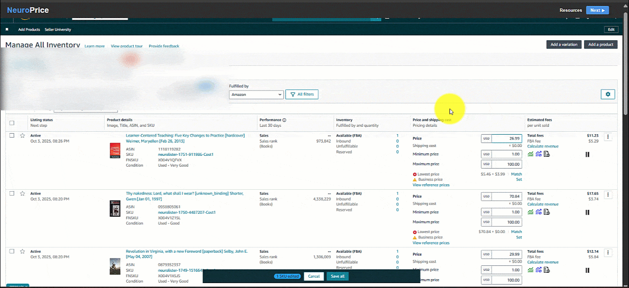 2. Use NeuroPrice to show you live data of all competing offers, side by side with your edited prices, revealing (for the first time) what your repricer is actually doing.